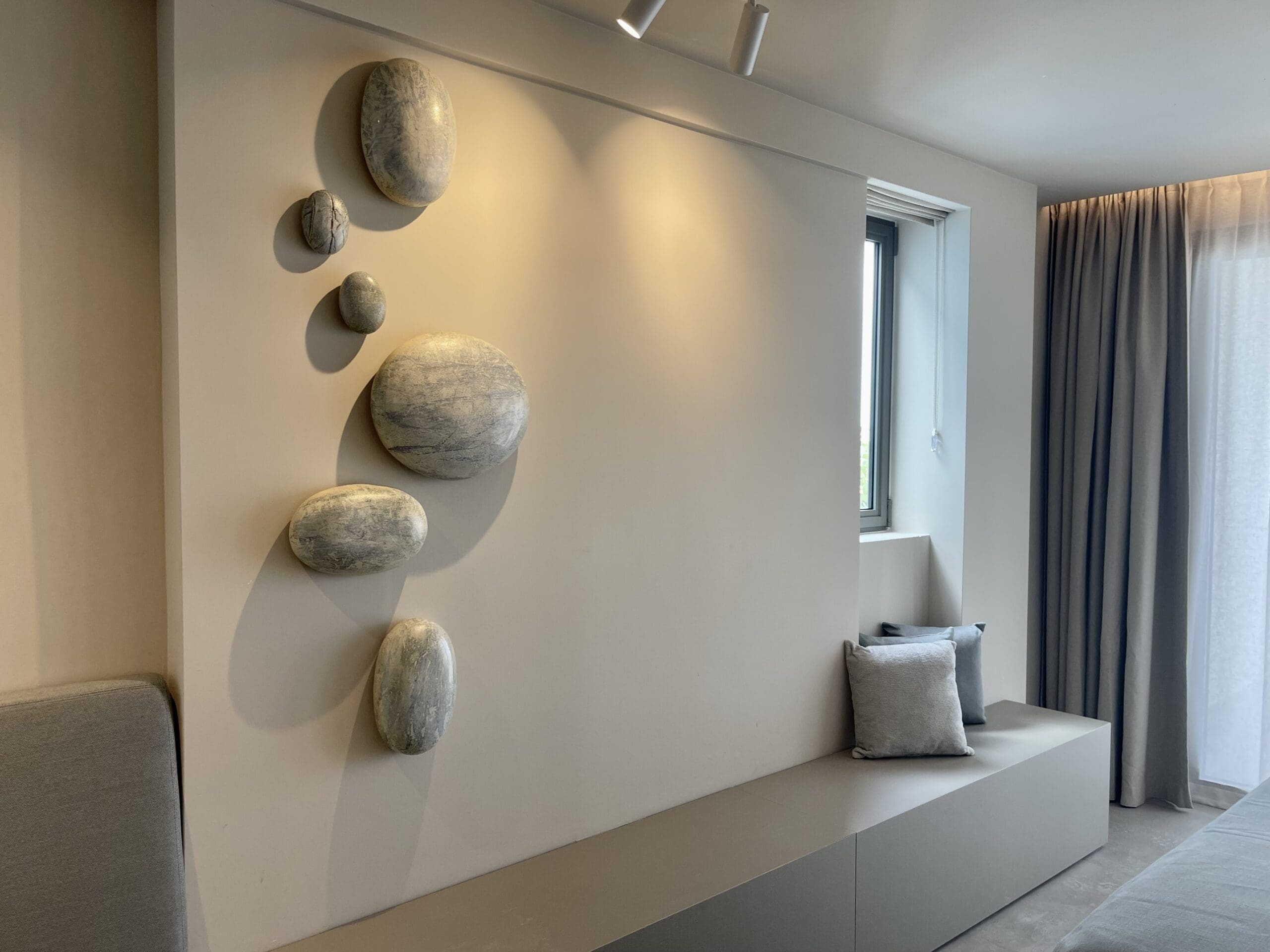 The Pebbles series reflects the smooth, sea-rounded coral stones that wash up along the shore. They represent the sense of calm and peace one feels by the water.